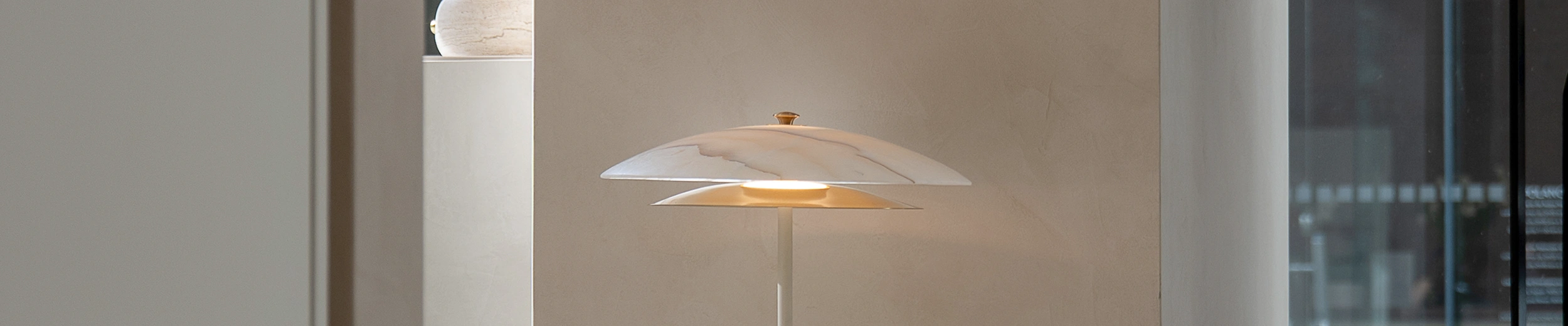La lámpara de piso FASE se caracteriza por suspender dos platos a través de un tubo metálico que se va adelgazando conforme a la altura. La luz emitida por un módulo LED escapa de manera superior a través de la transparencia del ónix y se refleja en el disco de latón inferior. Creando una atmósfera cálida a través de la luz tenue que emite esta luminaria. Inspirada en la observación y exploración de la geometría lunar.